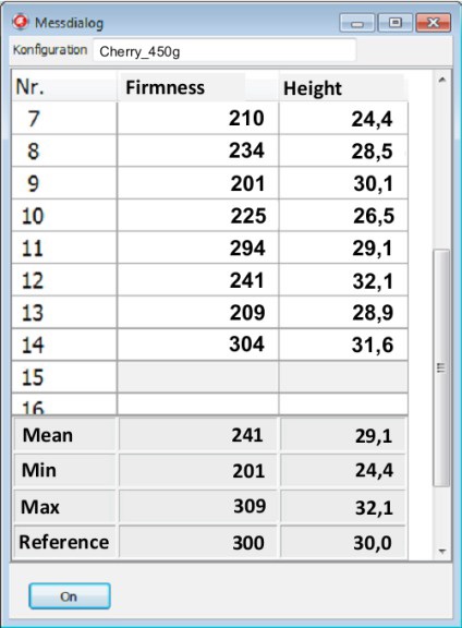 Additional to the firmness data you can enter the following data via keyboard to your dataset: