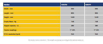 Under soil Fertilizer spreader for vineyards and similar crops - Working width 0,80 Mt. - Basic capacity 280 Lt.