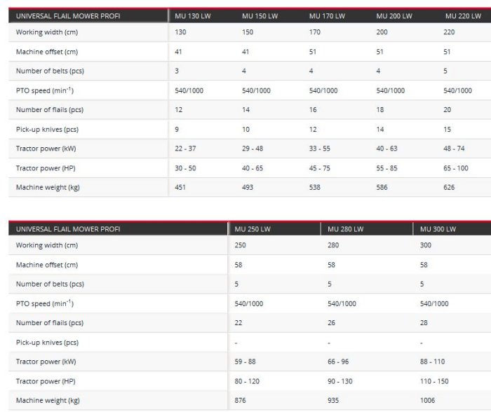 Tehnos - Model MU profi LW -Universal Flail Mower