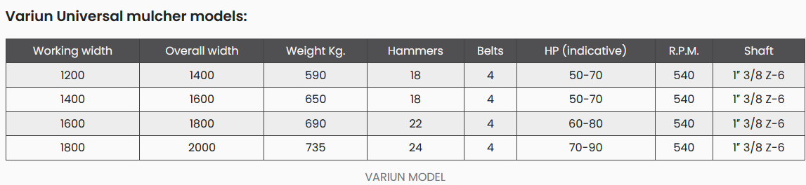 The VARIUN UNIVERSAL is a multi-purpose mulcher that can operate either centred and coupled to the rear of a tractor or in offset mode and turning to adapt perfectly to irrigation systems and slopes.