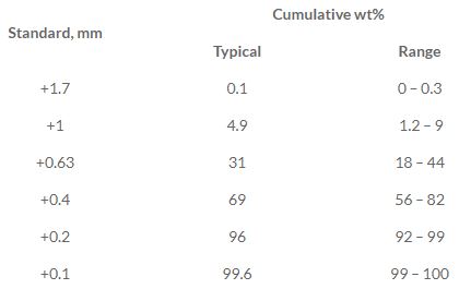 * Product analyses are typical as tested at the mine site.