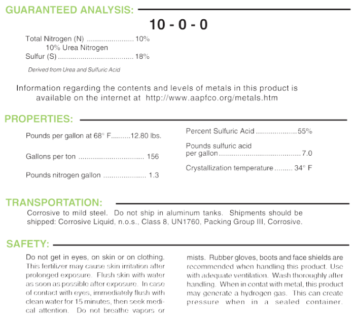 Verdegaal`s specialties is the manufacturing of urea-sulfuric acid fertilizers. The company holds a patent on the manufacturing of this liquid fertilizer. They market this fertilizer throughout several western states and Mexico. A remarkable property of urea-sulfuric acid fertilizers is that they virtually eliminate that corrosive action of sulfuric acid on human tissue, with only minimal reduction of the acidifying effect. Urea-sulfuric acid may cause a mild skin irritation after prolonged skin contact, and the product will sting if it comes in contact with a cut or sore on the skin. However, the product will dissolve clothing and deteriorate shoe leather, so it is recommended practice to use rubber protection equipment, especially foot gear and eye protection.
