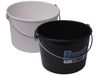 Ideal for feeding calves. Inside level lines for quarts and litres. High density polymer buckets. Heavy duty handle with galvanized 5/32" wire. Integrated mounting tab where the handle fastens to the pail. Finger grip ridge on bottom of pail to aid pouring and tipping. Low profile pail designed for feeding young calves so they can drink without having their eyes inside the pail. 15 per case.