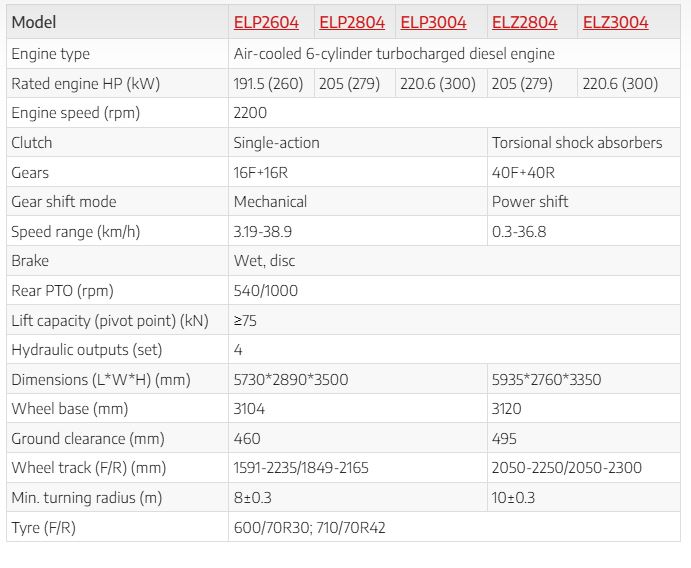 YTO - Model ELP2604/ELP2804/ELP3004/ELZ2804/ELZ3004 -Utility Tractor, 260-300HP