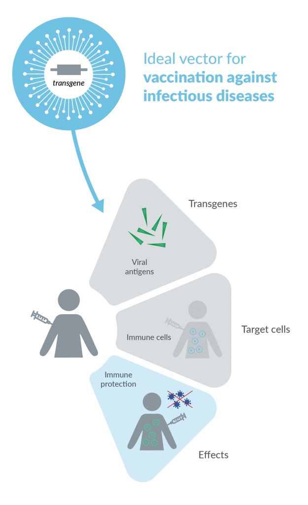 Measles virus vector as a transgene delivery platform for vaccination. The common, replicating measles vaccine virus is highly immunogenic and one of the safest live attenuated vaccines worldwide. Recombinant measles vectors can be used to deliver pathogen-specific antigens (e.g. from a coronavirus) to induce pathogen-specific vaccination effects.