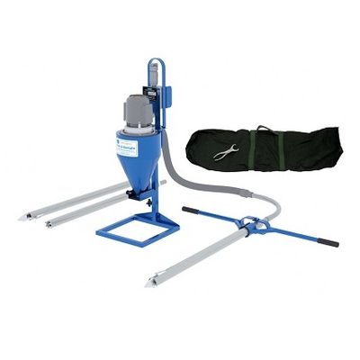 The Gamet Manufacturing Vac-A-Sample is a manually inserted pneumatic sampling probe capable of sampling to depths of 60 or more feet. This product is ideally suited for use in obtaining samples from enclosed bins and ground piles. The use of this sampler eliminates unnecessary shifting and turning of stored grain. It utilizes an explosion proof electric vacuum motor and switch assembly to draw samples from various depths into a portable cyclone assembly. Tip sections are available in three styles; course, fine and burr to meet all application needs.