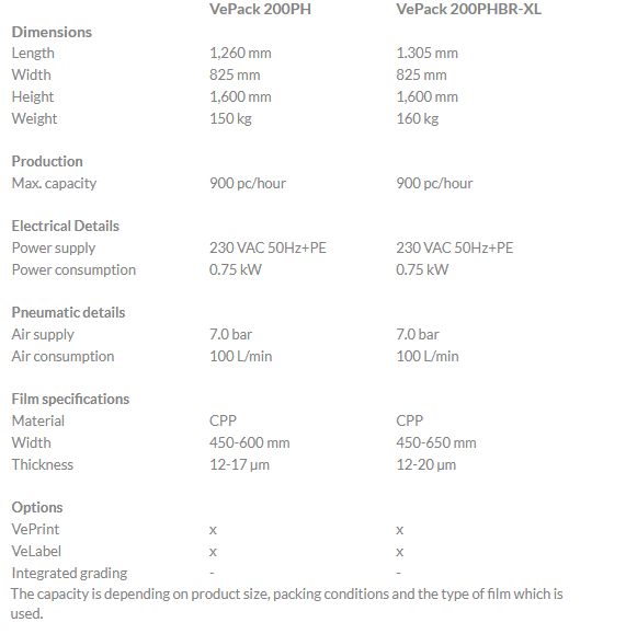 The VePack 200-PHBR-XL is the designated version for the Shelf Life packaging of Broccoli and Cauliflower.
