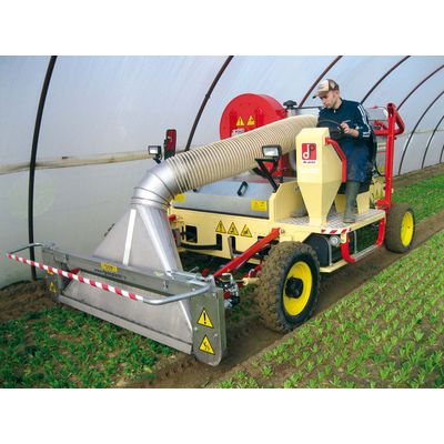 Compact machine for trimming and sucking up leaves and residues. Trimmer/Suction unit which allows the total ground cleaning from foliage or debris following harvesting. Very compact model ideal for use in arched glasshouses but can also be used on the field.