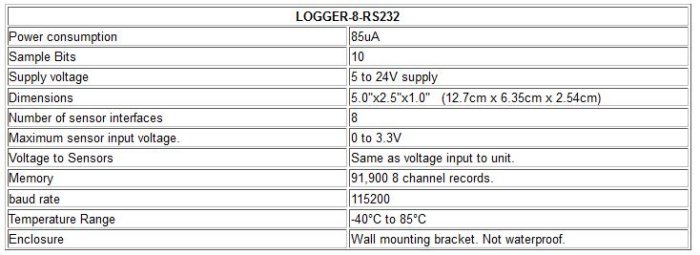 The logger normally consumes only 85uA when it is not sampling data, so it is perfect for battery powered applications.