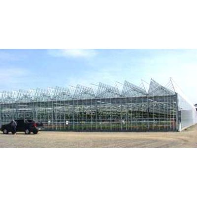 Often used by growers of perennials, baskets and other potted plants, this is the favorite type of greenhouse for many growers. It gives optimal control over the climate within the greenhouse and with that a harder and nicer crop. This greenhouse has the same superb structure as the Venlo greenhouse, but with a different roof design for maximum ventilation. This roof system generates up to 96% ventilation. The Cabrio system is storm safe. The continous vents are rack & pinion operated by axels supported in pillow block bearings. Each roof is individually operated by means of a motorized gear box.