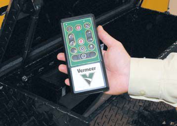Optional remote control lets one person do the work of two. Operate one machine to load while still maintaining control of the chipper. The remote control operates forward, reverse and stop functions of the feed rollers, restarting the feed rollers, engine throttle, engine stop, crush boost for the upper feed roller and hydraulic discharge chute positions (if equipped).