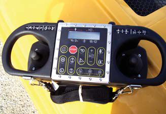 The optional radio remote control provides propel, boom and steering function control so there’s no need to stand at the swingout control station or front-mounted auxiliary control panel.
