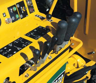 Operator presence system. The SC372 is equipped with three operator-sensing control levers that monitor the operator’s touch and maintain cutter wheel engagement. When the operator’s hands leave the control levers, an automatic disengage and braking sequence will stop the cutter wheel in less than nine seconds. With this safety system, the cutter wheel will automatically stop when the operator releases the hydraulic cutter wheel controls.