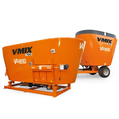 The 400 and 575 are the most popular models of the V-Mix series. The unique shape or their tub features a flat side that greatly speeds bale shredding which offers an appreciable time and energy saving day after day.