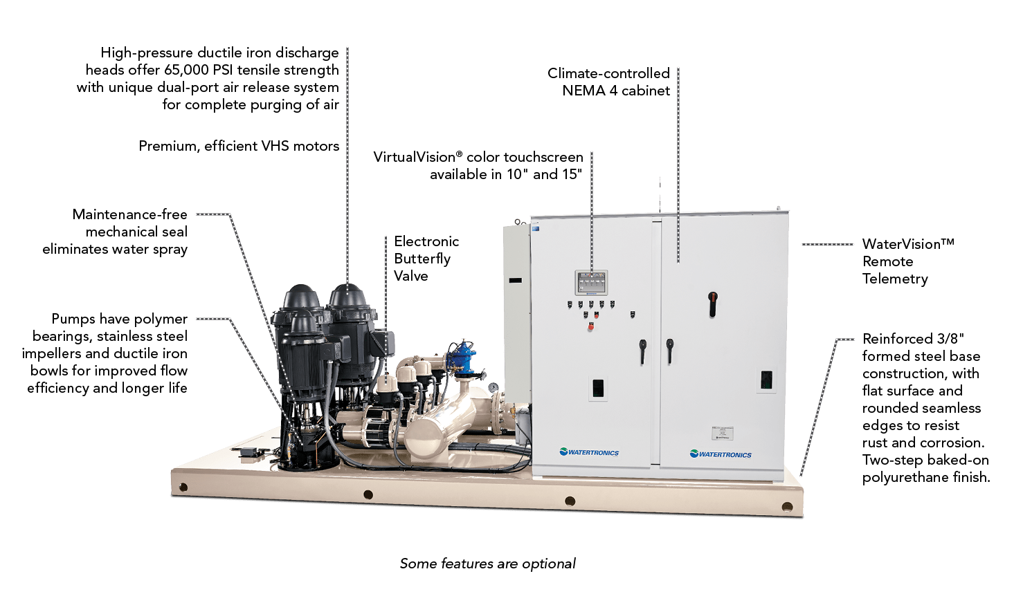 - Variable Frequency Drives assure near perfect pressure regulation and incorporate ride-through protection to keep systems operational following loss of power or alarm.