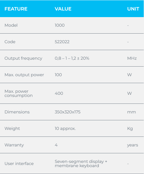 dVet 1000 is our dedicated product for large animals such as Horses. It consists of a programmable and adjustable high-frequency current generator, suitable for creating personalised and highly effective work protocols to achieve rapid and long lasting results. dVet 1000 has a limited weight and dimensions, 120W of delivered power and is equipped with the possibility to select the working frequency, timer, absorption reader, capacitive and resistive electrodes, two electrodes and a bipolar plate to work in maximum safety, without the need to cut the hair and without using gels or creams.