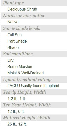 This distinctive plant is as highly valued as an urban ornamental as it is in native plantings. Mature plants usually develop multiple trunks with bright reddish green bark. It can be grown alone as a specimen, in groupings, or as an understory shrub. Does best in partial shade with moist, well drained soils.