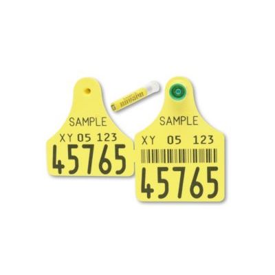Visual FlexoPlus ear tag with patented locking system. Also available as strip for double identification (both ears).