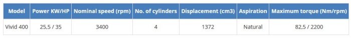 Tractors with short wheelbase and differentiated wheels, monodirectional, with steering wheels. 35 HP. The Vivid 400 are specialized tractors with rigid frame and front-wheel steering. The short wheelbase and the low hub make the Vivid 400 particularly performing in row crops, vineyards, orchards as well as all the maintenance work, in both summer and winter, typically done by local municipalities.The Vivid 400 are mounting a 4-cylinder, Lombardini engine developing 35 HP.