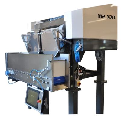 The Volmpack M2 XXL weigher is a great system for packaging lines between 10 and 50 pounds. This multi-lane weigher allows for accurate weights and fast production speeds while keeping costs down. The three vibrating lanes dedicated to each bucket are capable of moving a large volume of product into the buckets. The final weight is handled by a one-lane discharge that can send to two sides of the weigher.