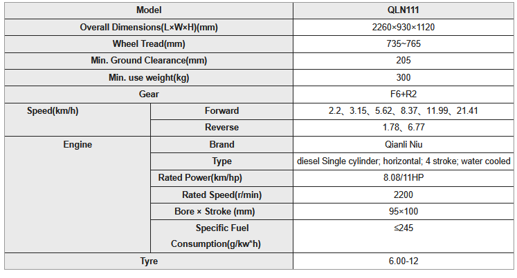 Qianli - Model QLN-111 -Walking Tractor