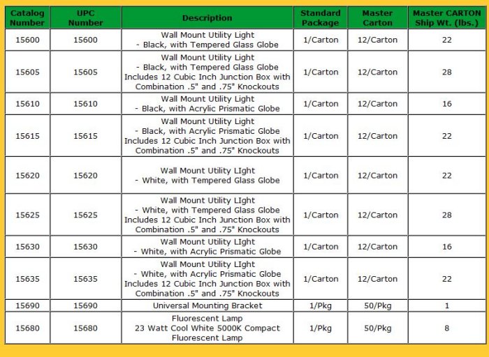 Incandescent Fixture rated up to 150 watts.* Low cost alternative to Vapor Tight Light Fixtures. High impact, corrosion resistant construction. Nickel-plated Brass Screw Shell. Medium Base - fits 3.25" or 4" Outlet Box.** UV resistant - Will not fade or discolor. Globe options: Tempered Glass or Acrylic Prismatic. UL File Number: E1 82610, Volume 2. UL Listed for use in wet locations.