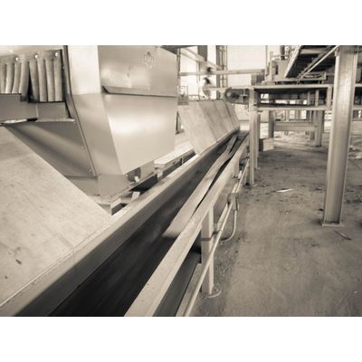 BELT CONVEYOR Belt conveyor for slabs and waste. Transporting of slabs and rips to chipper or KARA crosscut saw for slabs. Modular construction. Width of the belt 400 mm.