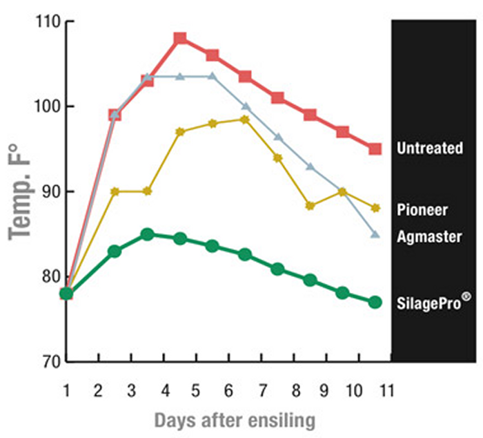 Controlling the microbial processSilagePro® alters the fermentation – pH drop is accelerated, less heat is produced, fermentation takes days, not weeks and fiber digestibility is increased – dramatic differences that can be measured by forage analysis and animal response!