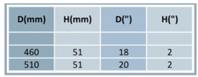 D (MM) 430. H (MM) 51. D(") 17. H(") 2.