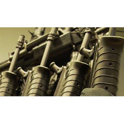 RFID tags or 2-D-Codes on the guns help to identify weapons easily. Furthermore all additional information about the weapons can be processed. RFID readers in the gun racks or handheld devices are used to identify the guns and register every movement in and out of the rack.