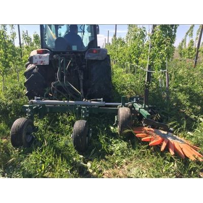 Equipment for mechanical weeding in vineyard and fruit tree plantations. Compact and robust chassis. Effective weeding system with front rollings for hard soil and rear fingers of different diameters and hardness according to the types of weed and terrain.