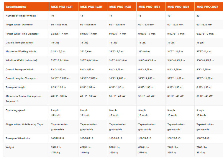 SITREX MKE-PRO series trailing wheel rakes are the best choice for the raking of hay. Their construction is designed for high-speed operation on any type of field and with any type of hay, always ensuring an excellent haymaking quality. The range includes six models with raking widths from 21’ to 37’ meeting the requirements of enterprises of any size. When all hay has been collected, the machine can be closed rapidly to the driving position, thus minimizing operation times. The whole frame is composed of thick, heavy-gauge tubing, including wheel supports, which decreases working costs and enhances machine durability.