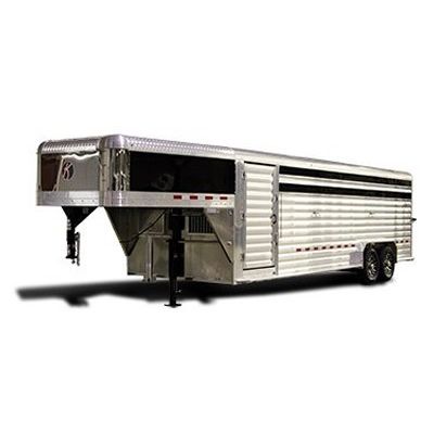 The new Deluxe II Wide trailer continues the industry-leading standards that have been associated with the standard Kiefer Deluxe II model. By increasing the width of the Deluxe II, it provides more room within the interior of the trailer, while still allowing effective use of mirrors when backing up. Unloading has also become easier with ample room for turning and leading out with a halter and lead rope. Some of the other existing Deluxe II standard features include double headers over every interior gate for more support, 4”x4” square tube superstructure that disperse stress away from the corners, quick slam latches for quick closure of doors and gates to keep livestock corralled.