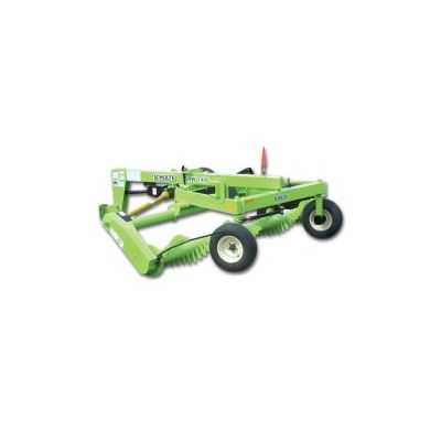 Transports at an ultra narrow width of 93” (2.36 M). Windrows 2” to 25” rocks with ease, forming them into neat uniform rows. Power is supplied to the windrower drum via a heavy duty PTO drive line which includes a slip clutch and shear bolt arrangement for protect ion against excessive shock loads. The final drive chain is totally enclosed for longer service life. The windrower drum is 14 feet (4.27 M) wide and is constructed of 8 5/8 inch (219mm) heavy wall HSS tube. Hard surfaced, 5/8 inch (15.9mm) x 6 inch thick x 6 inch (152.4mm) long teeth are welded directly to the drum pipe, resulting in problem-free operation even in difficult conditions.
