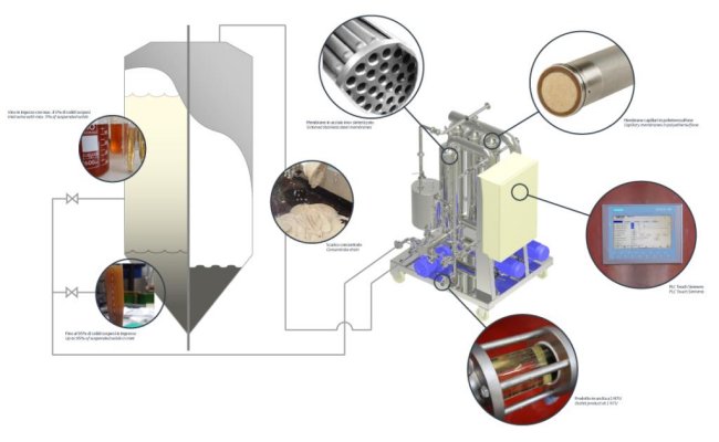 The advantadges in comparison to traditional filtration are: no need for filtration adjuvants; reduced product losses; low retention of colour and structure; single filter for all needs; possibility of filtration of sparkling wines; no lees in stock.