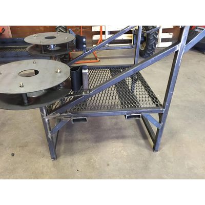 The Wire Spooler can easily be attached to either the Harvest Platform or the Work Platform to make the wiring process neater and more efficient. Its gentle rotating design allows for easy unravel of the wire so as not to interrupt the wiring process. With the ability to hold 4,000 ft of 12.5 gauge tensile wire rolls, the Wire Spooler allows for uninterrupted wiring for long stretches. To further increase the speed of wiring, the Wire Spooler is also able to dispense 4 wires simultaneously.