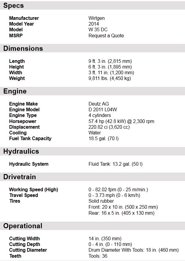 Wirtgen - Model W 35 DC Series -Milling Machine
