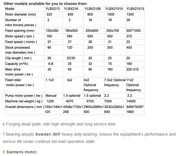 - Feeding system: can be frequency controlled and can prevent wood chipper from overload working when it is overload, the material will be returned back.