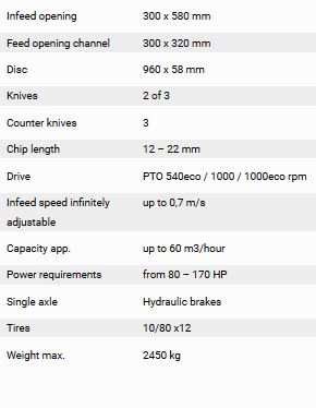 - Crane infeed, bottom slots, hydraulic raisable infeed with hydraulic of the tractor