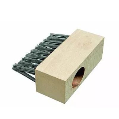 Weeding brush with wooden body, industrial quality. The V-shape arrangement of the trim material also enables difficult to access, and deep, places to be cleaned thoroughly. With 24 mm shaft hole (without thread) for securing a wooden handle for convenient working without having to bend down. Broomstick is also available.