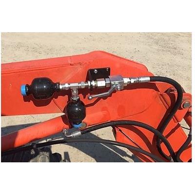 The Long Comfort Ride is designed to reduce the up and down jolting motion of your loader when riding over uneven surfaces. Two nitrogen charged accumulators are connected to the lift cylinders of your loader which helps dampen the ride. This also helps to reduce the stress imposed on your tractor from the loader. The kit includes two pre charged accumulators, mounting bracket, ball valve, adaptors, and hose. The accumulators are pre charged with different pressures to help give a smoother ride when the bucket is either empty or loaded. Opening the ball valve engages the Comfort Ride and when the ball valve is disengaged the loader returns to the normal operation. There are two size systems available. The smaller one is for sub compact tractors up to 60 hp tractors. The larger one is for tractors from 60 to 125 hp.