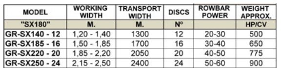The disc frame of SX model are individually adjustable, to respond to the exigencies of the vineyards as long as the whole year.Trailed disc harrows, suspended to the three points of the tractor, are strong and solid machines, very small and projected to adapt to vineyards and orchards which soil is particularly irregular and stony.The small dimension favours to work fast and to work all over the whole surface without leaving any areas uncultivated. The SX disc harrows can go equipped with a central shank. This way the whole surface is cultivated. echnology applied is the same as the one employed in bigger machines and for big areas. That is the reason why trailed disc harrows are strong machine, absolutely reliable for hard soils such as vineyards and orchards.