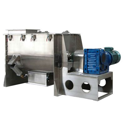 The horizontal spiral belt mixer consists of a U-shaped container, spiral stirring blades, and transmission components; Spiral shaped blades are generally made into double or triple layers. The outer layer of spiral shaped blades collects materials from both sides to the center, while the inner layer of spiral shaped blades transports materials from the center to both sides, forming convective mixing.