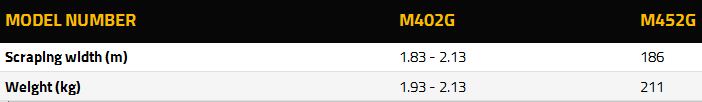 - Choice of two different models with scraping widths ranging from 1.83m (6’ 0”) to 2.13m (7’ 0”)