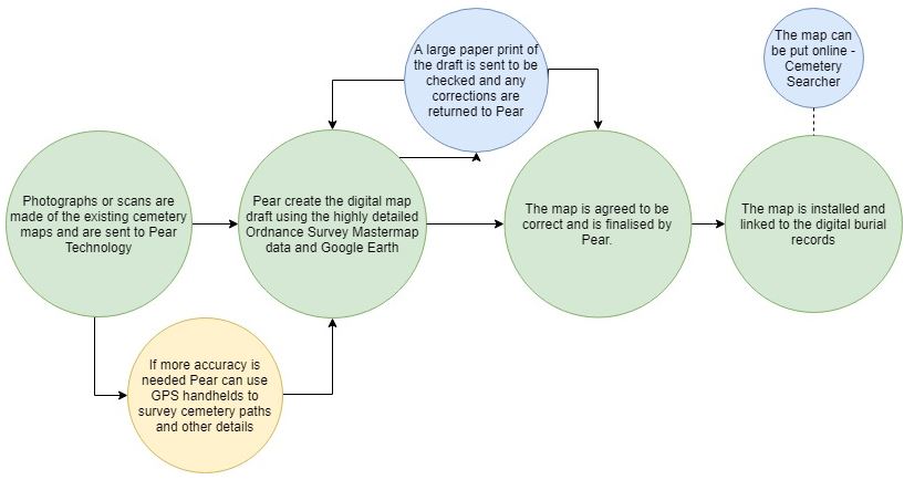 Why choose a Pear Cemetery Map? A Pear cemetery map is created using the latest and most reliable data sources available, from Ordnance Survey data to aerial imagery, GPS and existing paper maps. Our experience and expertise in this sector means your cemetery maps are both accurate and affordable.