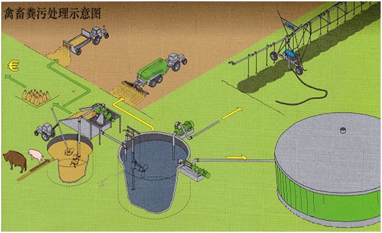 With the development of society, livestock breeding industry is flourishing day by day, and a great deal of livestock manure is produced in the process of breeding, which seriously affects the surrounding environment of the farms and the sanitation of the underground water sources. Livestock manure treatment equipment manufacturing experts, a series of products of Dalian forest irrigation equipment Co. for sale, for farm waste treatment and recycling of energy, to provide a strong guarantee, the breeding industry has strong development. (pictured below is a flowchart of our company`s livestock waste disposal system).