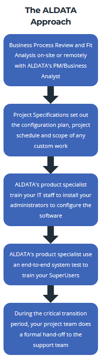 Like our systems, our services are tailored to the needs of our clients. Clients who have limited IT resources may need us to take the lead in getting the project implemented. On other projects, our product specialists join the client`s project team as subject matter experts and trainers. We can deliver services remotely or visit your site as you wish. Whatever help you need, our goal is to make sure you get the greatest Return on Investment from your ALDATA system.