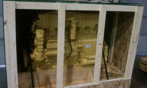 (UN3166 Engine, internal combustion, flammable liquid powered, class 9. Another example of a dangerous goods consignment that is crated for proper protection for transportation to its final destination in Africa.)