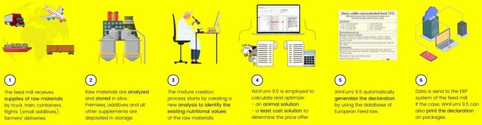 WinFumi is the HYBRIMIN® software that addresses the specific needs of feed manufacturers in the processes of compound feed optimization (mineral feed, premix etc.), recipe management, and automatic declaration.