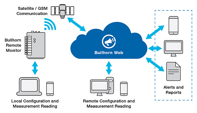 - Instant Awareness – Bullhorn Web can be used to see the status of any monitored asset 24/7, day and night, via a web browser or mobile device, so that trends can be identified, problems solved, and equipment operated at maximum efficiency. If there’s an issue with a monitored asset, Bullhorn Web can notify relevant personnel via phone call, mobile text, web alert, or email message.